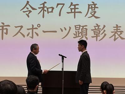 米原市スポーツ顕彰表彰式で本校生徒が表彰 投稿: 双葉中学校 (09:33) 3月14日、米原市スポーツ顕彰表彰式が開催され、本校陸上部の皆さん、水泳、水球、硬式テニス、柔道、軟式野球、サッカーなど地域クラブで活躍した生徒が表彰されました。また、高校で活躍する本校卒業生も表彰されました。皆さん、おめでとうございます。これからのますますのご活躍を期待しています。 0